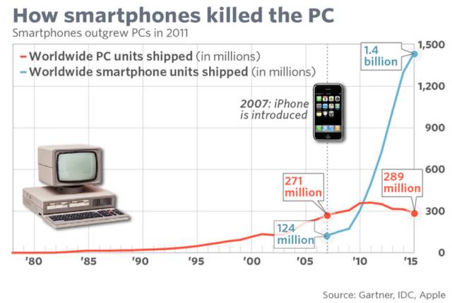 過去十年是智能手機快速增長的時代。2007年蘋果第一代iphone發布,開啟智能手機元年,2010年iphone4發布,全球手機產業鏈的成熟推動行業迅速增長,智能手機開始超過電腦成為全球第一大硬件市場,智能手機出貨量從2007年的1.24億部增長至2016年的14.7億部。與此同時,國產智能手機也從無到有,涌現出華為、OPPO、VIVO等全球份額前列的手機廠商,2016年整體銷量超過6億部。