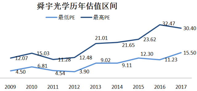 公司專注光學產業30年,砥礪前行,積淀深厚,目前主要產品包括光學零件(手機鏡頭、車載鏡頭、其他鏡頭)、光電產品(手機攝像頭模組)和光學儀器(顯微儀器、測量儀器、分析儀器),客戶涵蓋華為、OPPO、VIVO、三星、索尼、奔馳、寶馬、奧迪、特斯拉、Mobileye、??怠⒋笕A、大疆、蔡司、奧林巴斯等知名企業。公司2016年手機鏡頭出貨量3.79億顆,全球份額11%,僅次于臺灣大立光(33%);車載鏡頭出貨量2300萬顆,全球第一,份額30%;手機攝像頭模組2.7億顆,全球份額9%,僅次于歐菲光(10.7%)。目前市值740億港幣,在港股手機零部件板塊中僅次于瑞聲科技。