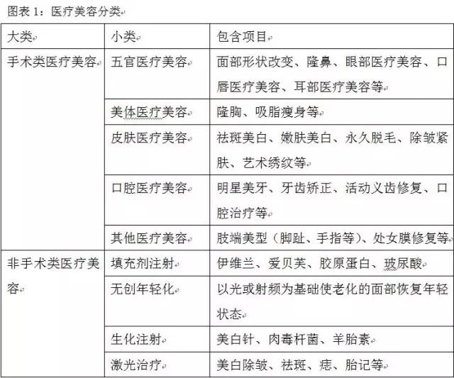 隨著“顏值時代”的來臨,追求美麗和展示美麗的效應使整形美容的需求與日俱增。康德也說過美就是一種無利害的自由的愉悅。審美愉悅是人生來就會去追尋的。醫療美容行業成為繼房地產、汽車、電子通信、旅游之后的第五大消費熱點,是“朝陽行業”。醫療美容是指運用手術、藥物、醫療器械以及其他具有創傷性或者侵入性的醫學技術方法對人的容貌和人體各部位形態進行的修復與再塑。與醫美對應的是生活美容,兩者的區分以是否破損真皮層為標準。醫美可分為手術類與非手術類,其中手術類醫美按照部位又可分為五官醫美、美體醫美、皮膚醫美、口腔醫美、其他醫美等,非手術類醫療美容可分為注射填充類、無創年輕化、激光美容等。目前使用頻度較高的主要有面部整容、豐胸、口腔美容等。