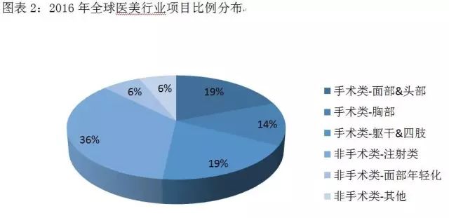 近年來,各種非手術類美容技術發展迅速,微整形由于具備“無痛、無痕、可恢復、起效快、安全性高”等優點日益受到愛美人士的追捧。2016年全球最受歡迎的美容手術項目前5名分別是眼瞼手術、抽脂術、隆胸術、自體脂肪移植、鼻整形術,而最受歡迎的非手術項目前5名則是肉毒素注射、玻尿酸注射、激光脫毛、化學換膚、激光皮膚磨削術。受益于認知度提升和復原快的特點,微整形的增速超過了醫美行業,從項目上來看,增長最快的是注射類項目,包括玻尿酸和肉毒素的注射,其次是皮膚類的項目,再次是手術類整形項目。