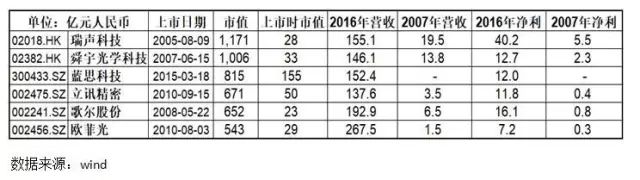 數年前,手機行業還是諾基亞、摩托羅拉、索尼三分天下,然而2016年全球手機銷量前5的品牌中,華為、oppo、vivo分別占據3-5名,合計份額21.6%,高于蘋果的14.6%、三星的21.2%。國產品牌的崛起帶動了上游零部件供應商的飛速發展。
