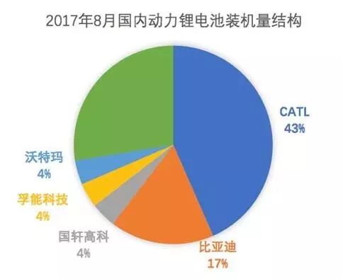 今年以來,隨著補貼退坡、中游大幅降價以及對電池性能要求的提升,動力鋰電池行業的洗牌已初露端倪,逐漸呈現“一超多強”的市場格局。根據最新的電池裝機總量數據,2017年8月前十大電池廠商合計裝機量為2.3GWh,占整體比例達79%,其中最顯著的特點為CATL一家獨大,以1.26GWh的裝機量占據43%的市場份額,其后依次為比亞迪、國軒高科、孚能科技、沃特瑪。雖然受限于行業擴張初期競爭格局不穩定,站在當前的時點依然無法判斷出未來中國乃至全球動力鋰電池的龍頭企業,但行業集中度提升是大勢所趨,電池生產商只有憑借過硬的技術實力和強大的整合能力才能在快速到來的行業洗牌中立于不敗之地。