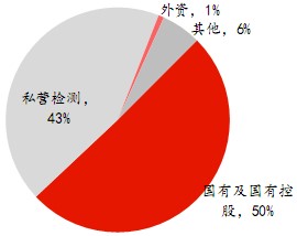 2016年我國檢驗檢測機構中,國有及國有控股機構16773家,其中事業單位11479家,私營企業14265家,港澳臺及外商投資企業267家,其他機構834家,私營企業占比43%,檢驗檢測機構改革與整合成效明顯,市場化機制正在形成,但市場格局仍然十分分散。SGS和BVI等國際巨頭營收規模已經達到三四百億元人民幣,在中國的營收規模也達到大幾十億的規模,而國內最大的民營檢測機構營收規模大概二三十億,差距十分明顯。